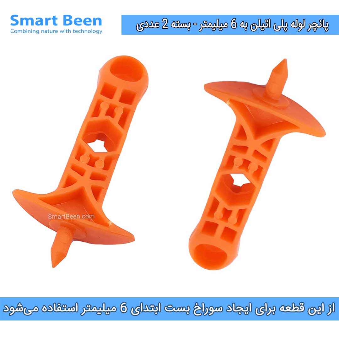- از این قطعه برای ایجاد سوراخ 6 میلیمتر بر روی لوله پلی اتیلن استفاده میشود. (بسته دو عددی)