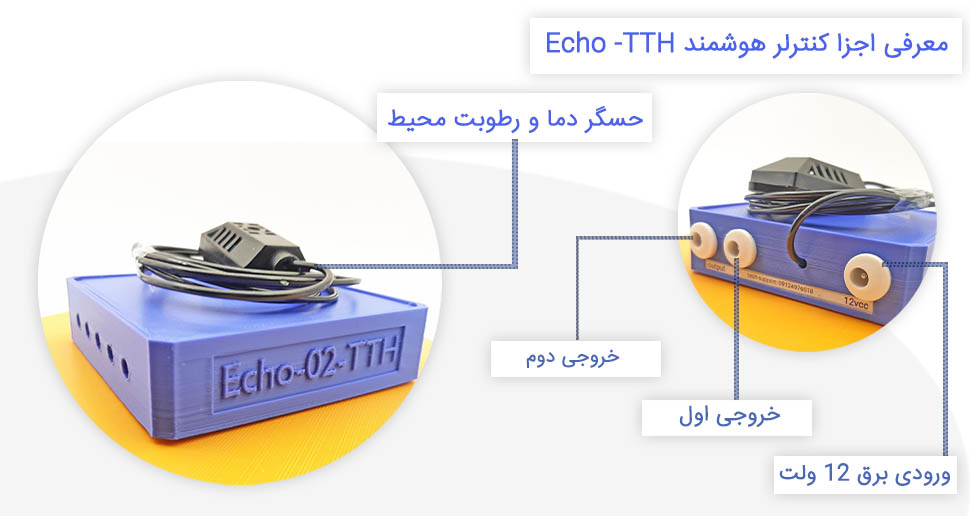 - کنترلر آبیاری و مه پاش هوشمند دو خروجی، به همراه سنسور دما و رطوبت، مناسب گلخانه خانگی مدل TTH