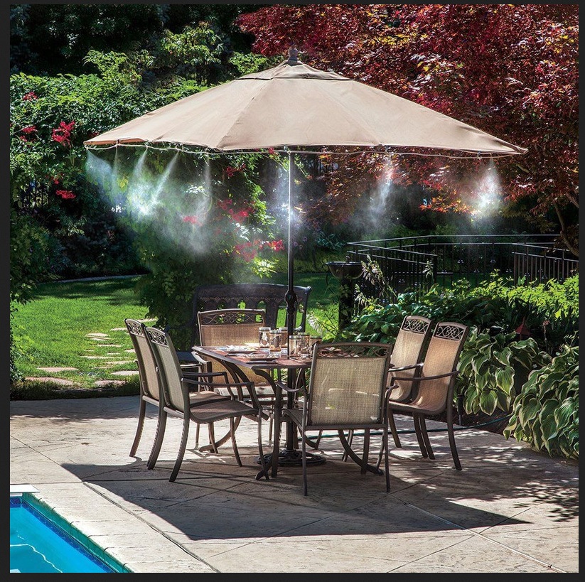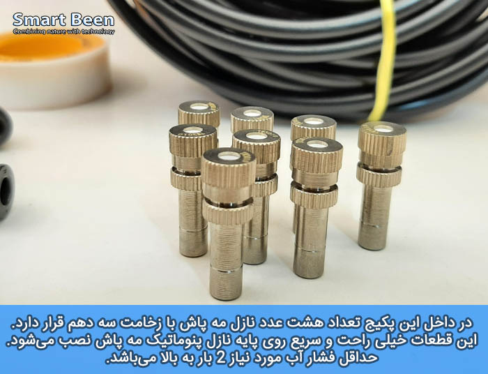 مجموعه لوازم کامل مه پاش خانگی که صرفاً با فشار آب شهری استاندارد به راحتی کار میکند. (هرچند اگر پشت آن پمپ قرار بدهید کارکرد آن بسیار بهتر میشود)