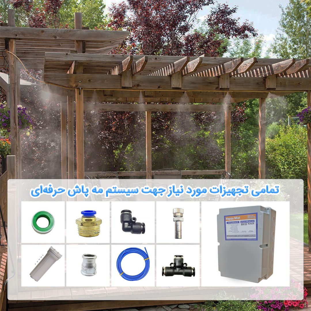 مجموعه لوازم مه پاش نیم صنعتی به همراه پمپ کاملاً بیصدا.