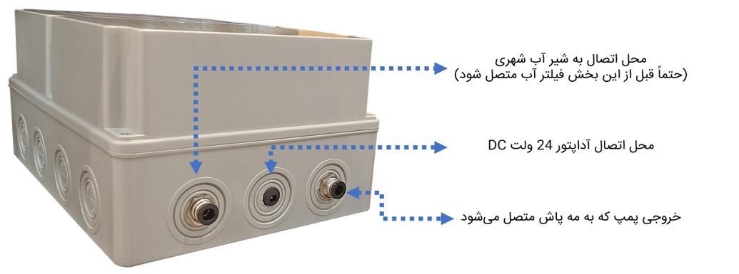 نصب و راه اندازی این پکیج مه پاش خیلی ساده است، چرا که همه بخشهای حساس را ما خودمان نصب کردیم و داخل تابلو قرار دادیم. فقط کافیست بخش ورودی پمپ را به آب شهری متصل کنید و بخش خروجی را به نازلهای مه پاش متصل کنید.