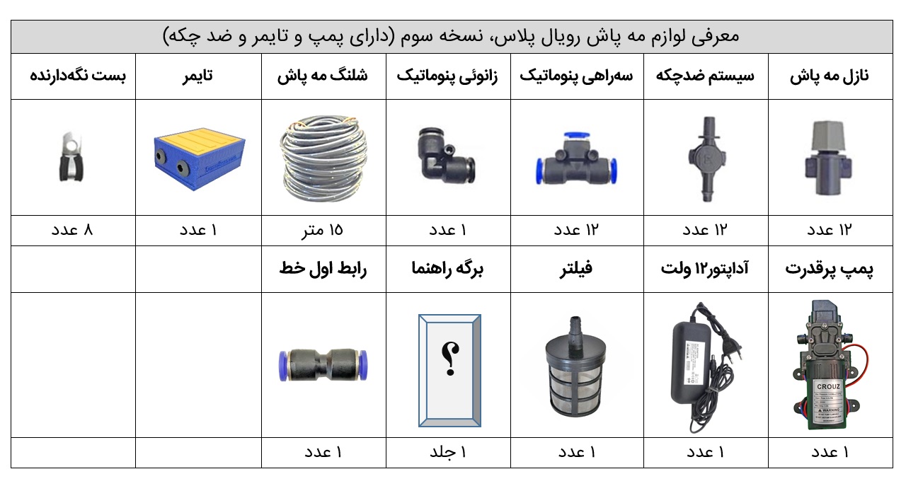 محتوا داخل پکیج مه پاش رویال پلاس نسخه سوم: