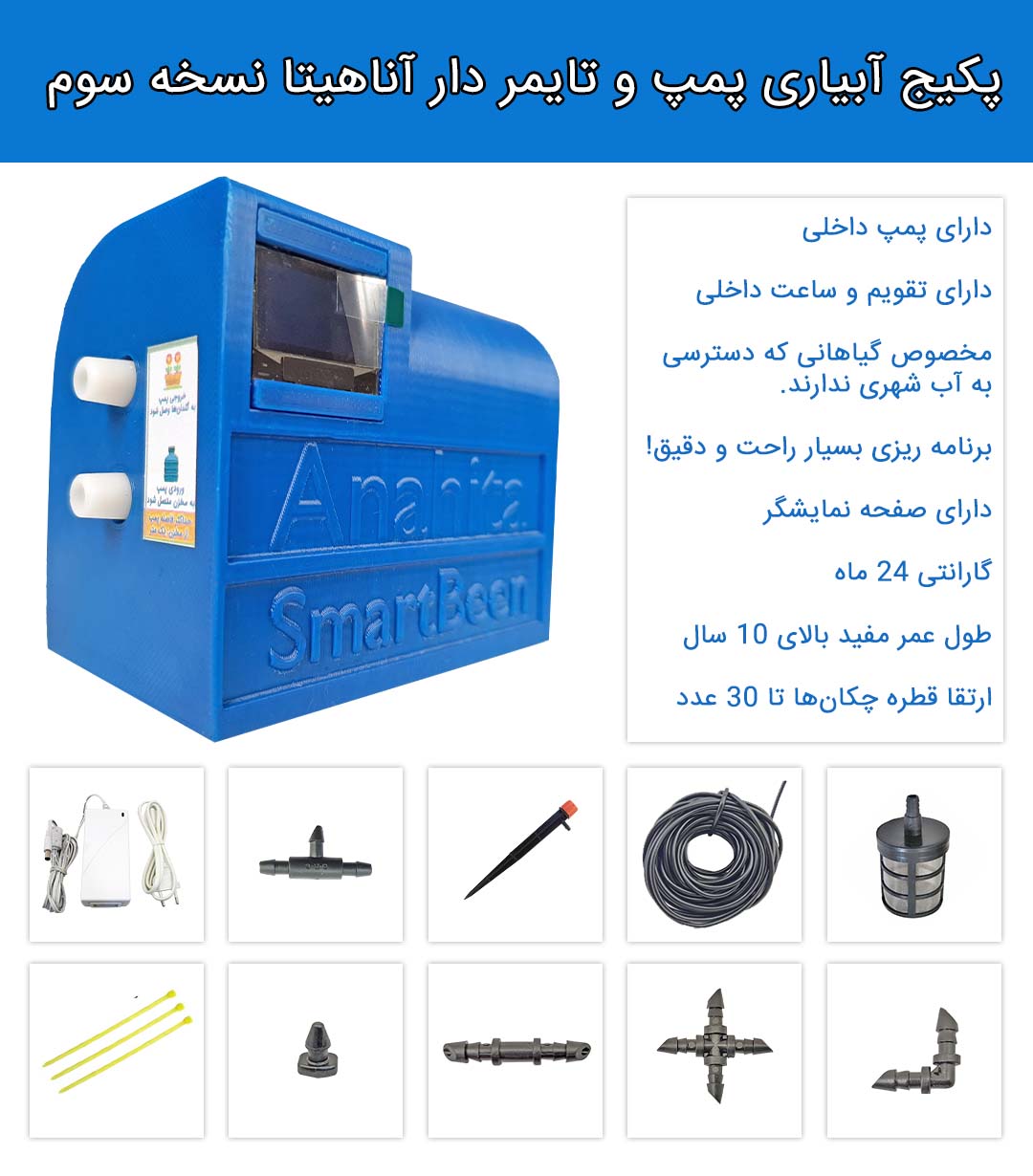 داخل پکیج آبیاری آناهیتا نسخه سوم چه اقلامی وجود دارد؟
