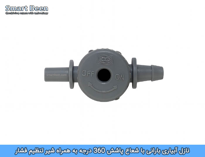از این قطعه کوچک ولی کاربردی برای آبیاری بارانی (پاششی) استفاده میشود. گیاهانی مانند چمن یا سایر گیاهان رونده معمولاً نیاز به آبیاری بارانی دارند و این مدل نازل به خوبی این نیاز را برطرف میکند. توجه داشته باشید این محصول برای کارکرد صحیح نیاز به حداقل فشار یک بار را دارد. همچنین روی این محصول یک شیر آب قرار گرفته که میتوانید با تنظیم آن شعاع پاشش را تنظیم کنید.